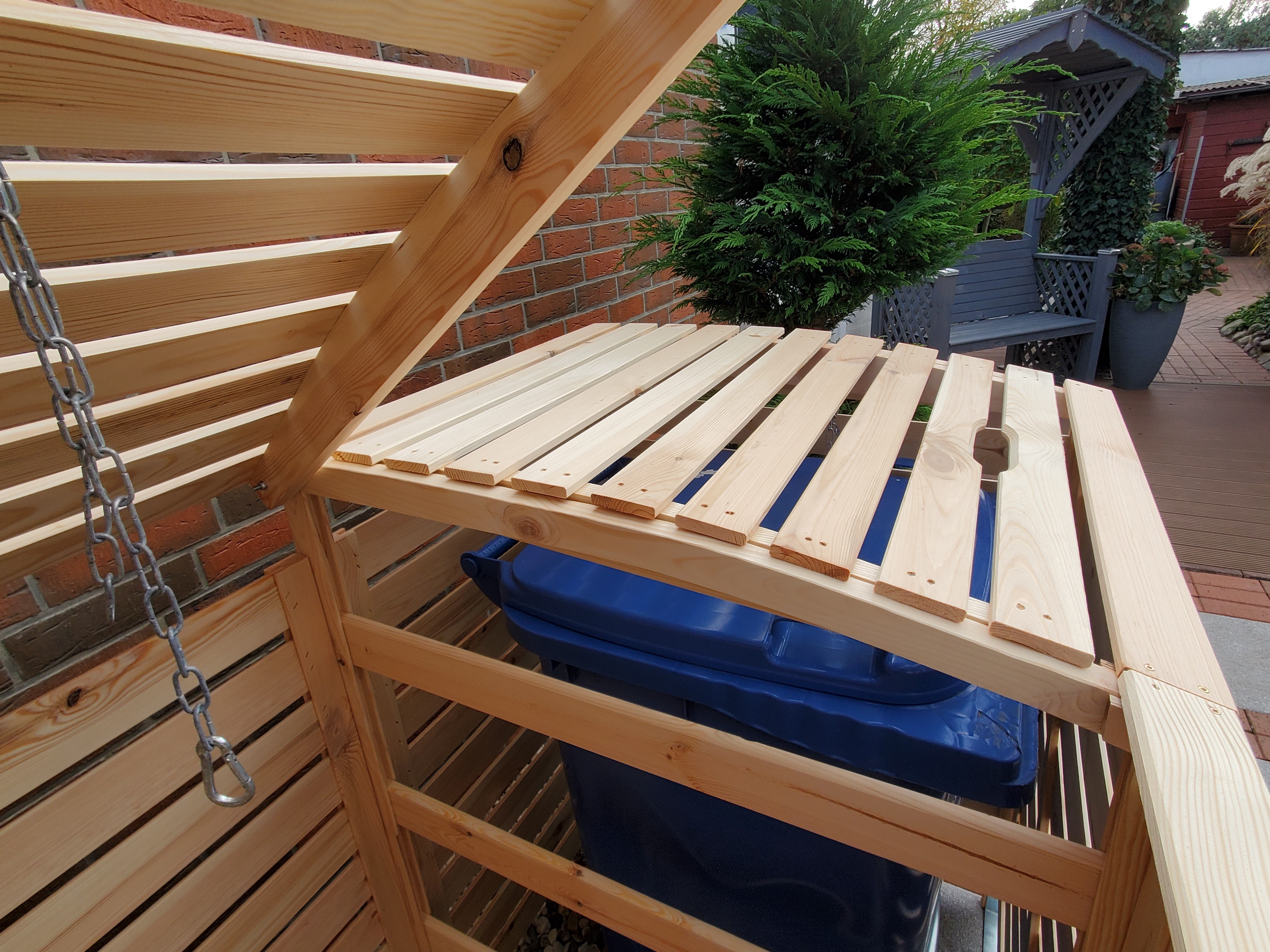 Ganz gleich, ob für zwei, drei oder mehr Tonnen – mit unseren Mülltonnenverkleidungen entscheiden Sie sich für ein durchdachtes Produkt, das Funktionalität und Ästhetik vereint. Die hochwertige Verarbeitung und die natürliche Holzoptik fügen sich harmonisch in jede Garten- oder Hofgestaltung ein und machen aus einer Notwendigkeit ein echtes Designobjekt.