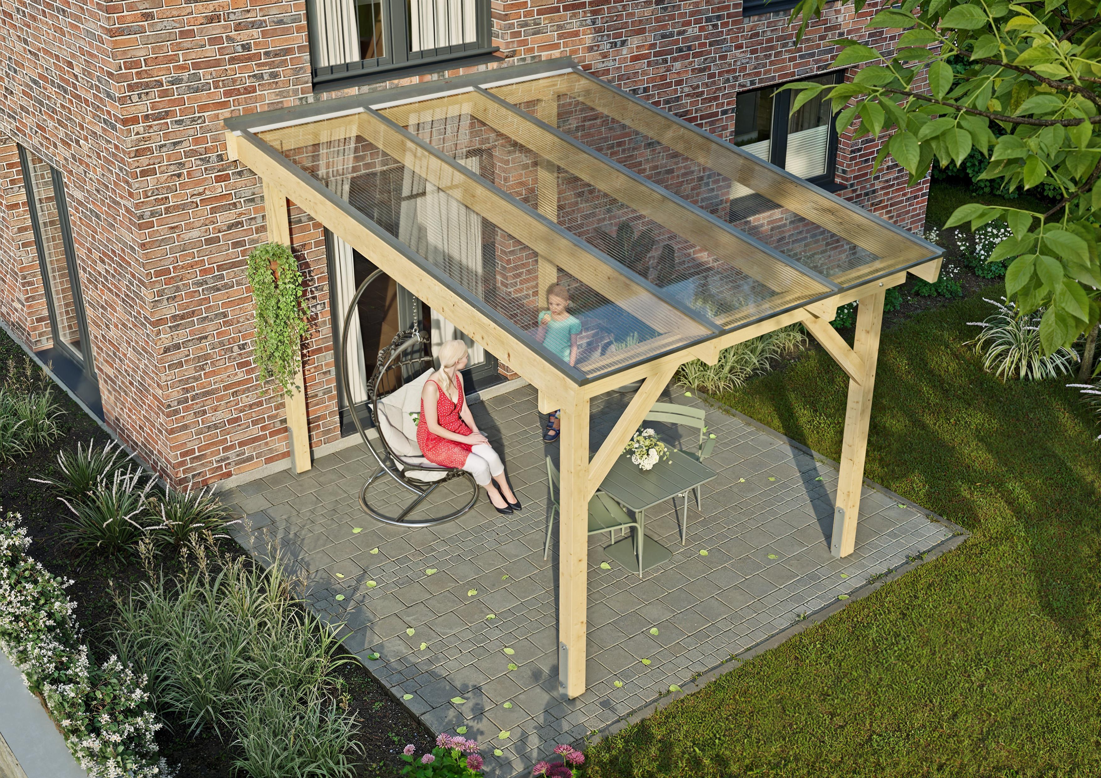 Mit unserem Terrassendach aus unbehandeltem Fichten-Leimholz investieren Sie in ein langlebiges, stabiles und individuell gestaltbares Produkt, das Ihre Terrasse zu einem gemütlichen und geschützten Rückzugsort macht. Wählen Sie die passende Bedachungsart und genießen Sie die Zeit im Freien, unabhängig vom Wetter.