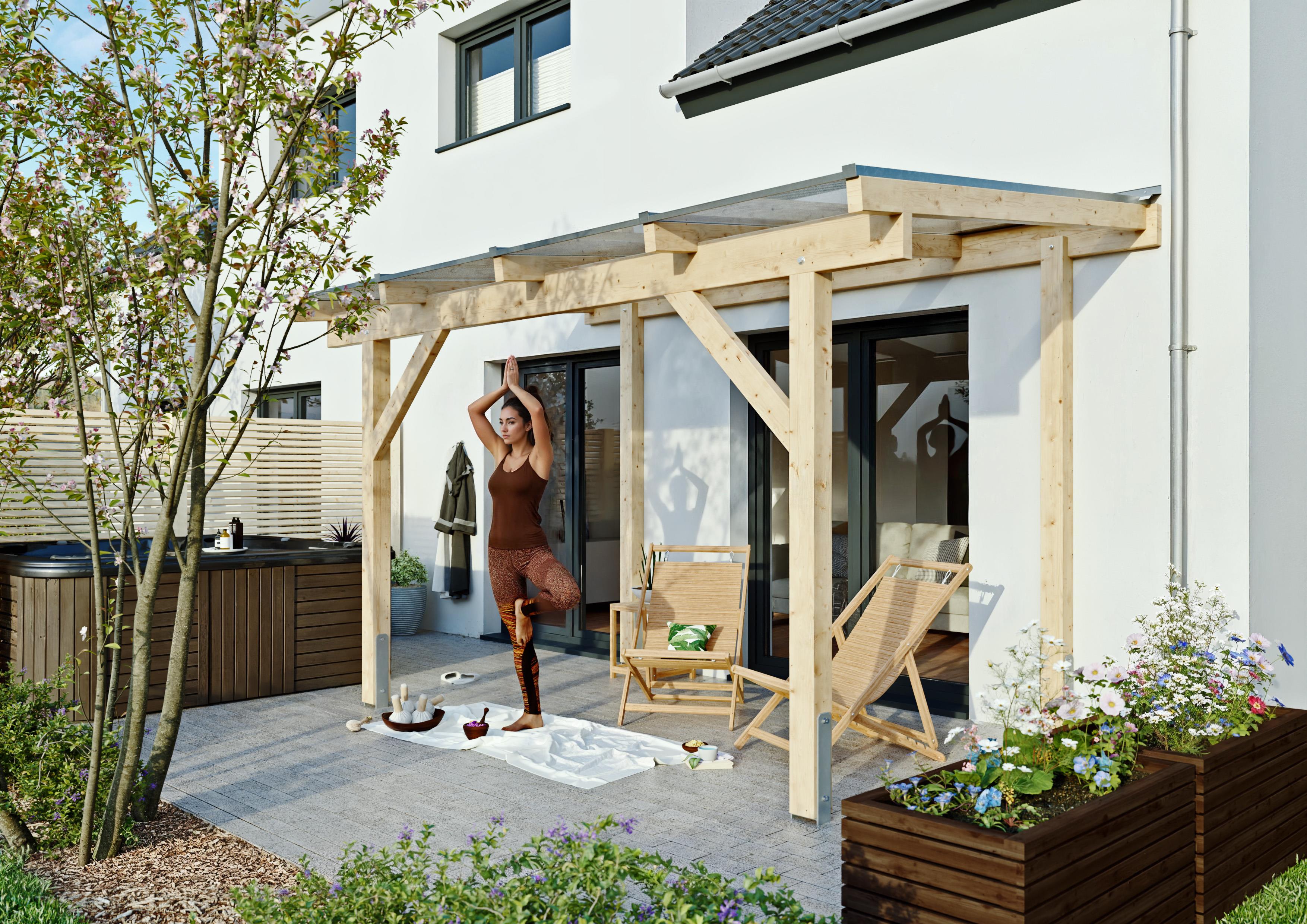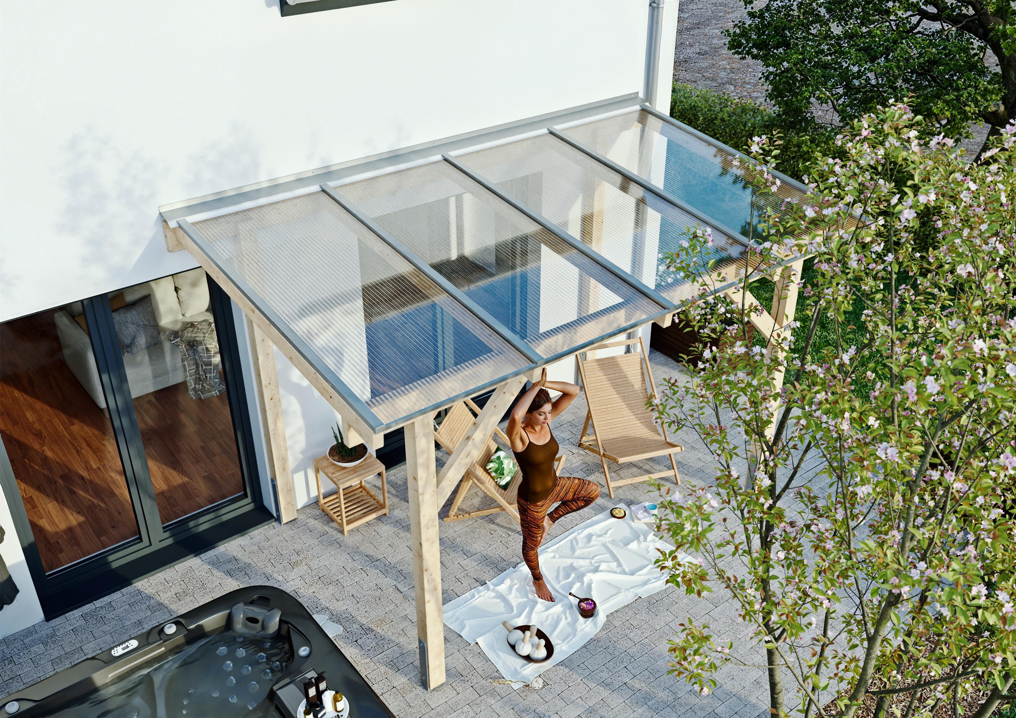 Mit unserem Terrassendach aus unbehandeltem Fichten-Leimholz investieren Sie in ein langlebiges, stabiles und individuell gestaltbares Produkt, das Ihre Terrasse zu einem gemütlichen und geschützten Rückzugsort macht. Wählen Sie die passende Bedachungsart und genießen Sie die Zeit im Freien, unabhängig vom Wetter.