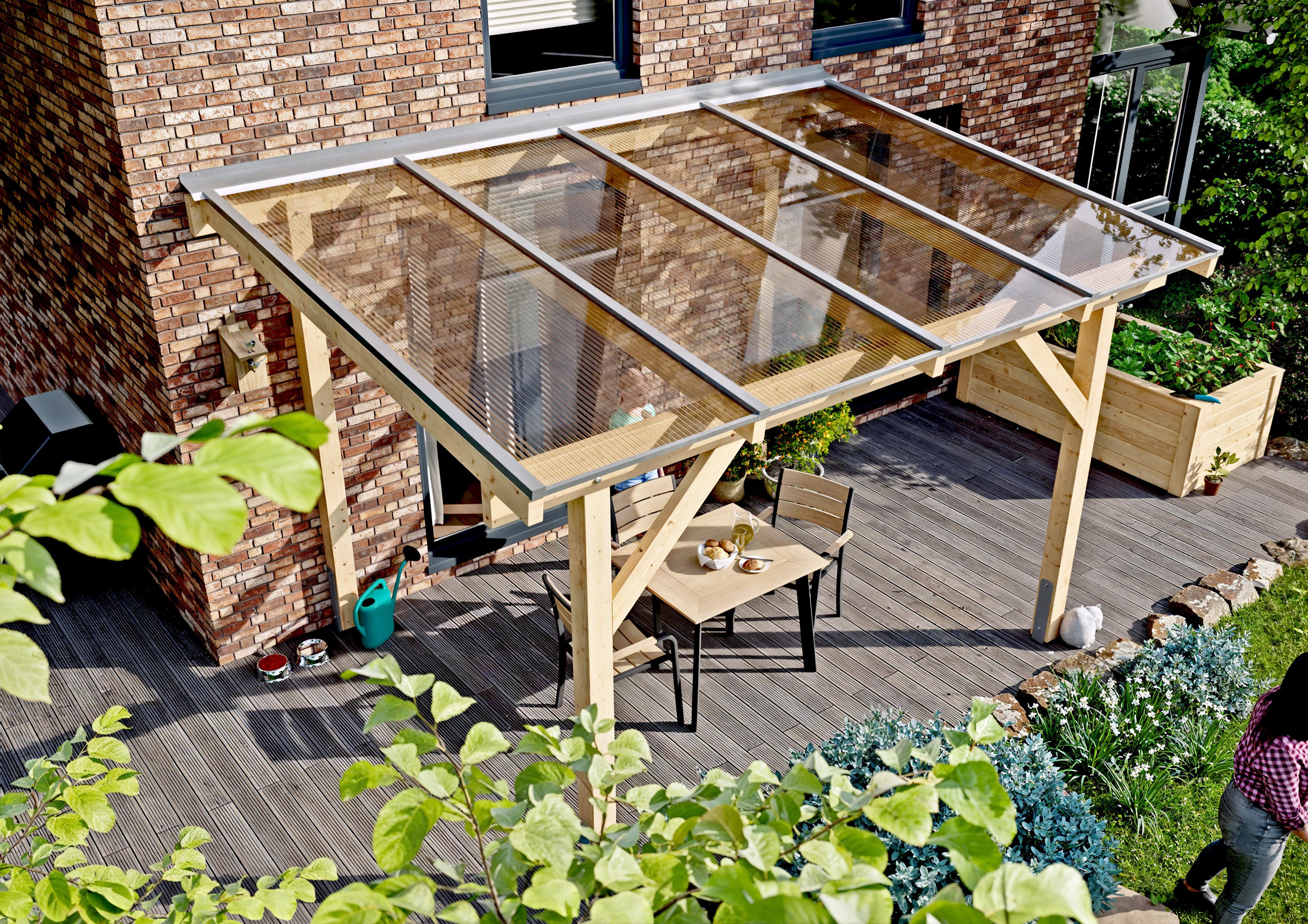Mit unserem Terrassendach aus unbehandeltem Fichten-Leimholz investieren Sie in ein langlebiges, stabiles und individuell gestaltbares Produkt, das Ihre Terrasse zu einem gemütlichen und geschützten Rückzugsort macht. Wählen Sie die passende Bedachungsart und genießen Sie die Zeit im Freien, unabhängig vom Wetter.