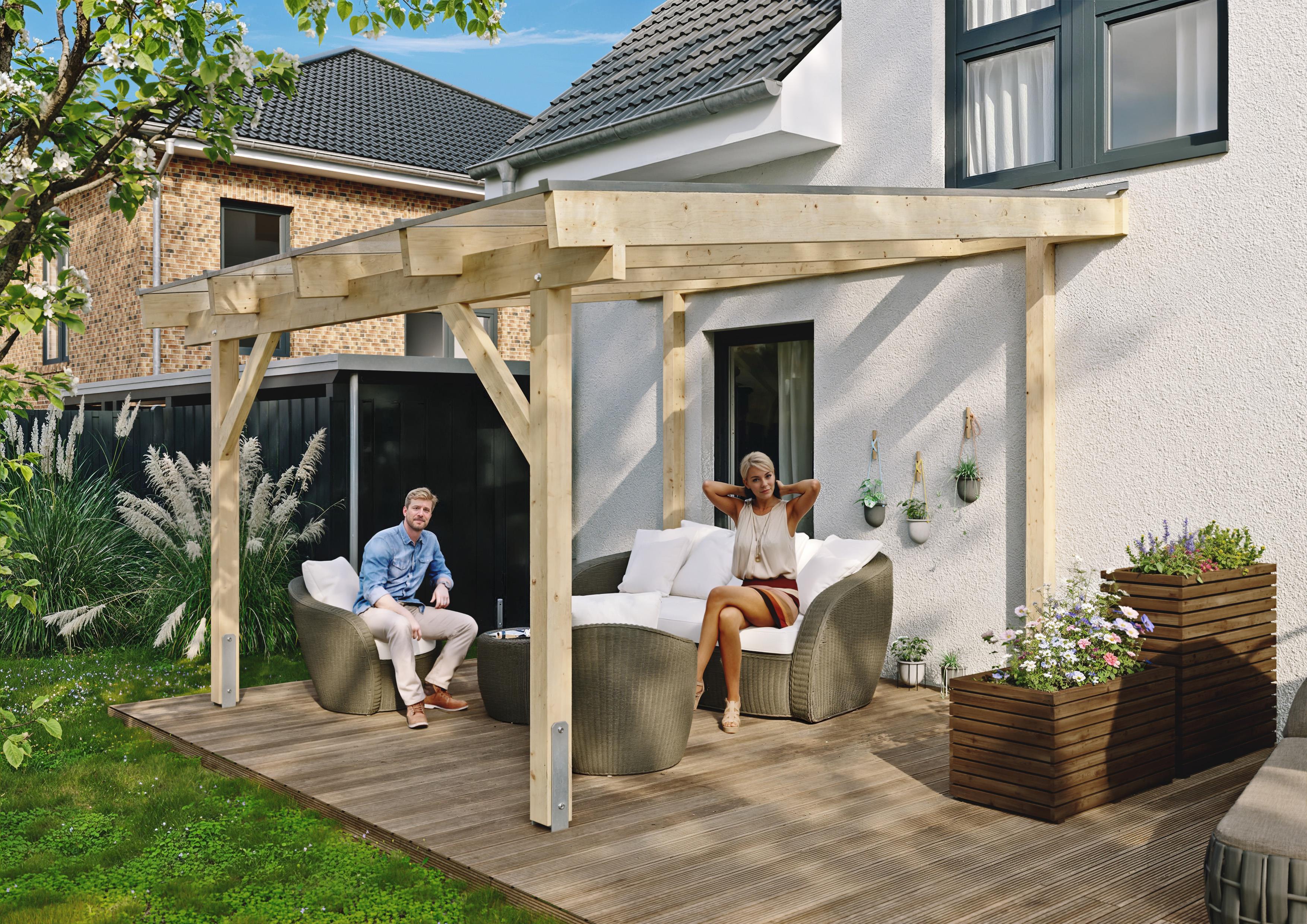 Mit unserem Terrassendach aus unbehandeltem Fichten-Leimholz investieren Sie in ein langlebiges, stabiles und individuell gestaltbares Produkt, das Ihre Terrasse zu einem gemütlichen und geschützten Rückzugsort macht. Wählen Sie die passende Bedachungsart und genießen Sie die Zeit im Freien, unabhängig vom Wetter.