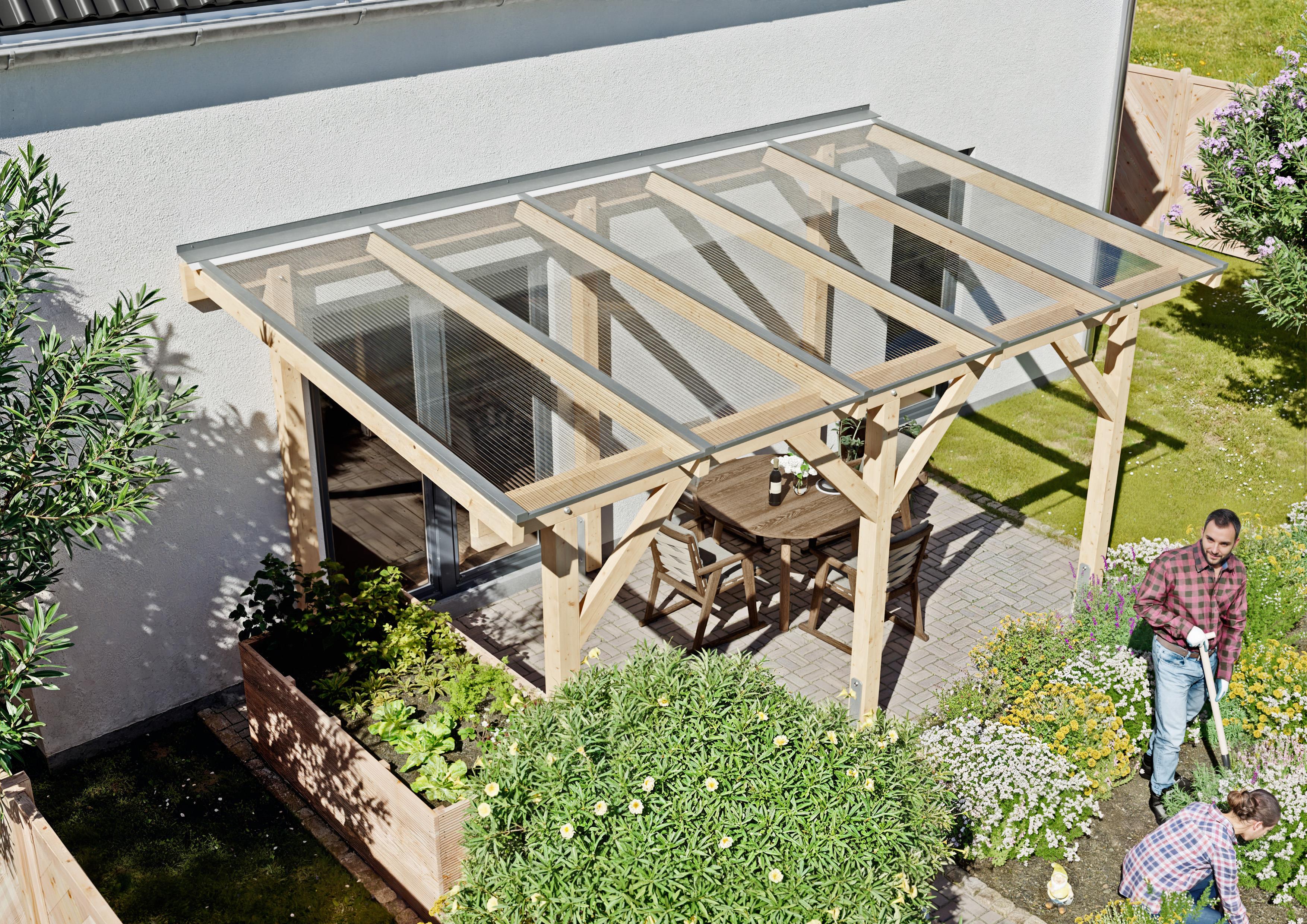Mit unserem Terrassendach aus unbehandeltem Fichten-Leimholz investieren Sie in ein langlebiges, stabiles und individuell gestaltbares Produkt, das Ihre Terrasse zu einem gemütlichen und geschützten Rückzugsort macht. Wählen Sie die passende Bedachungsart und genießen Sie die Zeit im Freien, unabhängig vom Wetter.