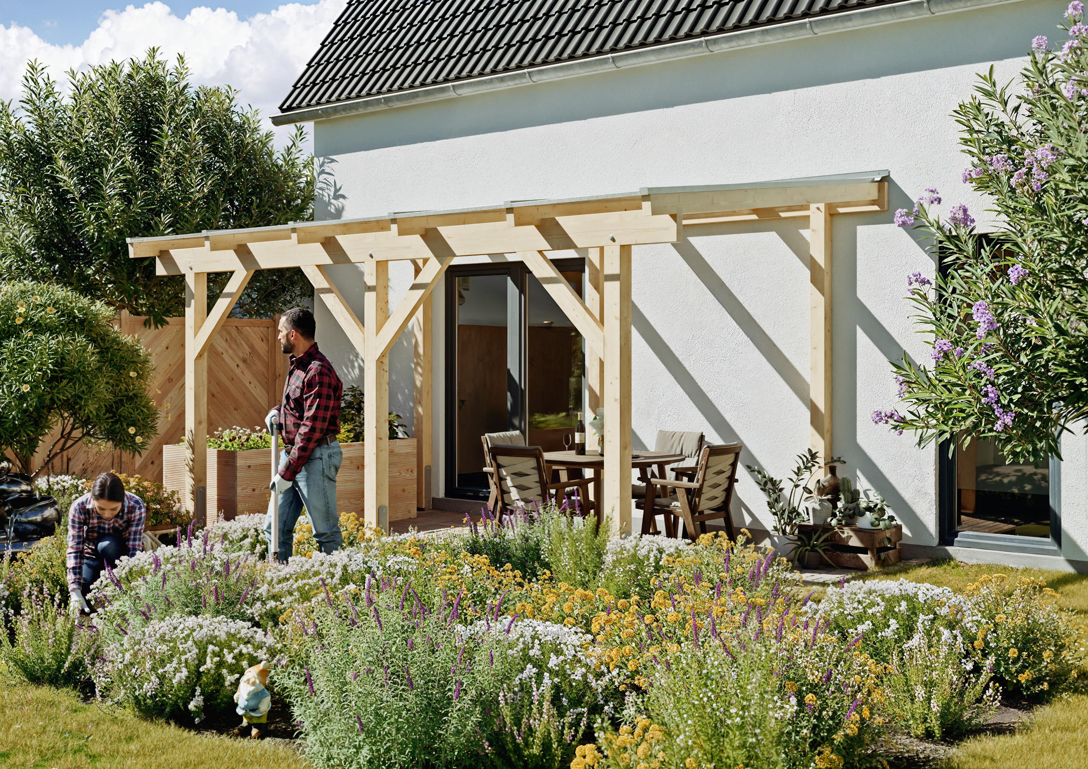 Mit unserem Terrassendach aus unbehandeltem Fichten-Leimholz investieren Sie in ein langlebiges, stabiles und individuell gestaltbares Produkt, das Ihre Terrasse zu einem gemütlichen und geschützten Rückzugsort macht. Wählen Sie die passende Bedachungsart und genießen Sie die Zeit im Freien, unabhängig vom Wetter.